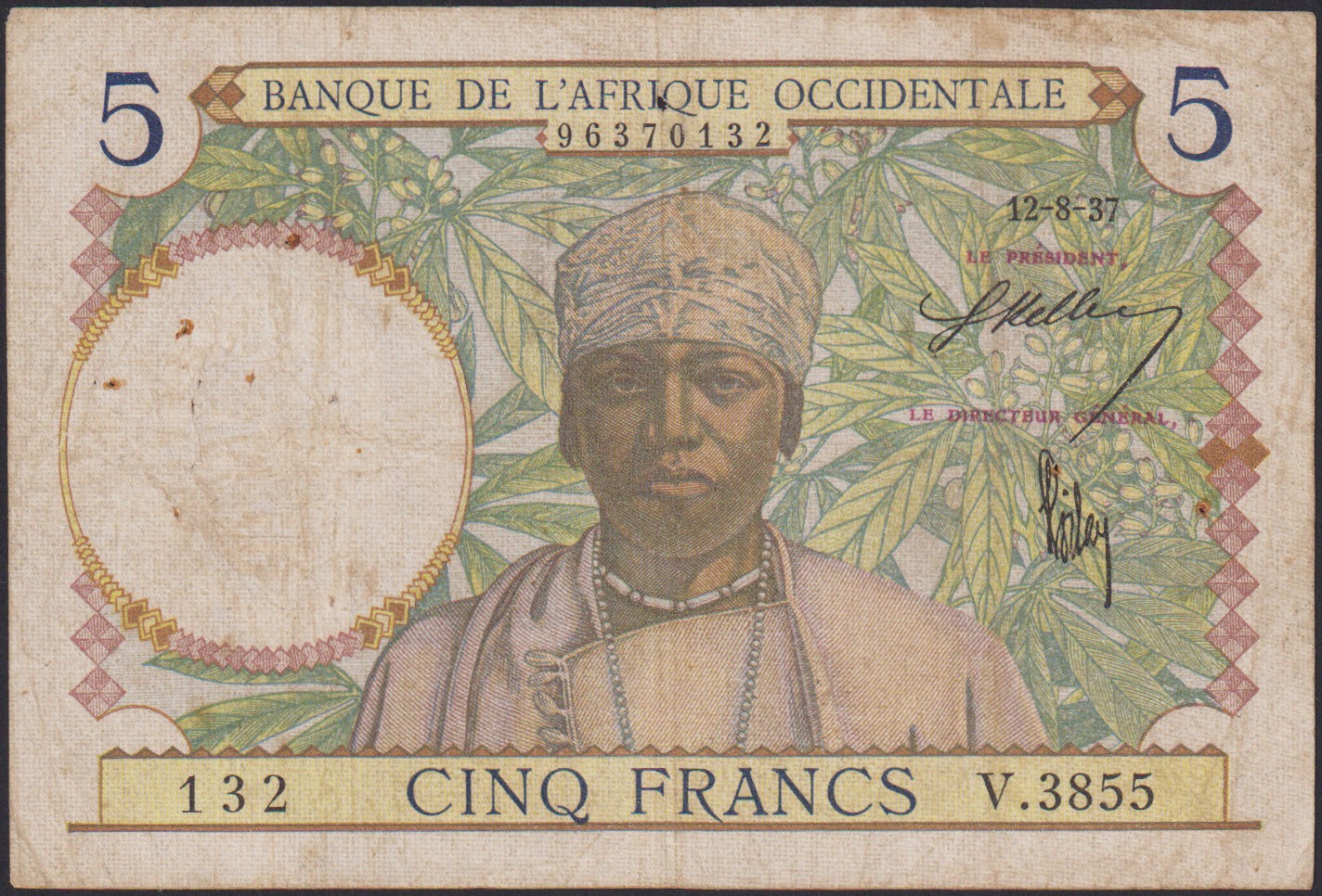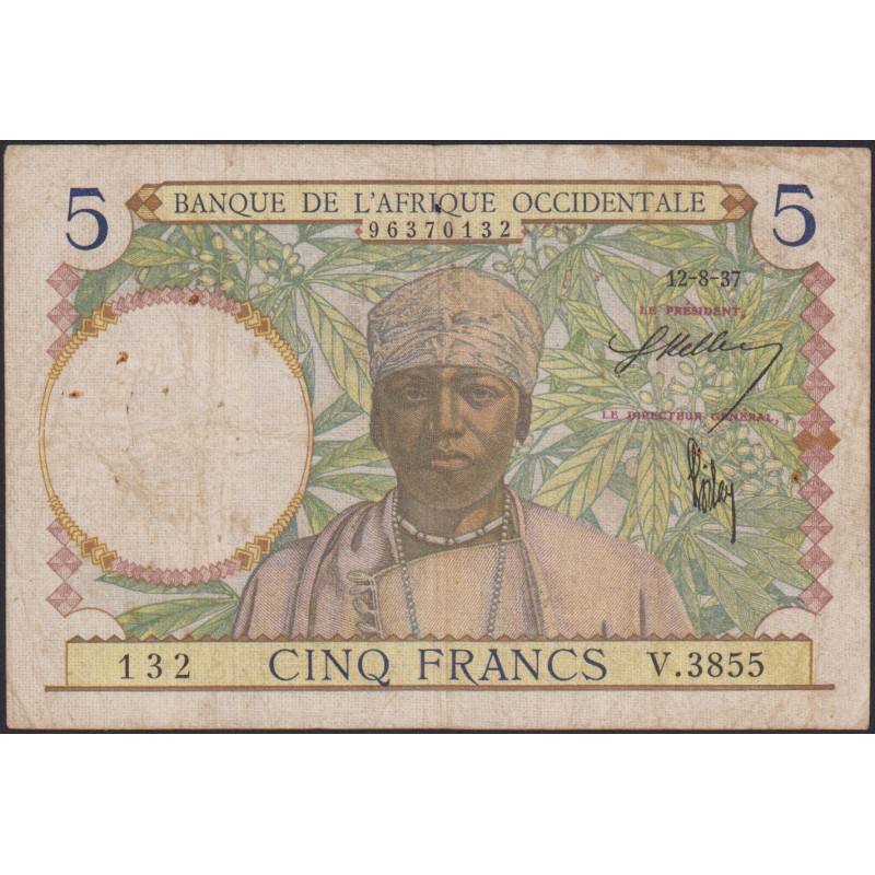 FRENCH WEST AFRICA 5 Francs 12.08.1937