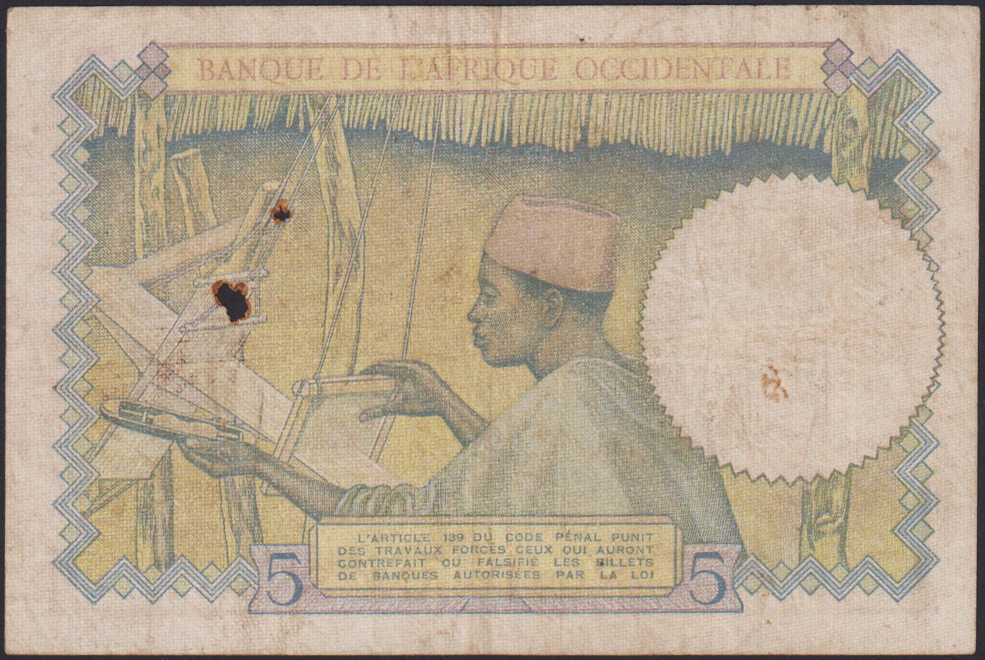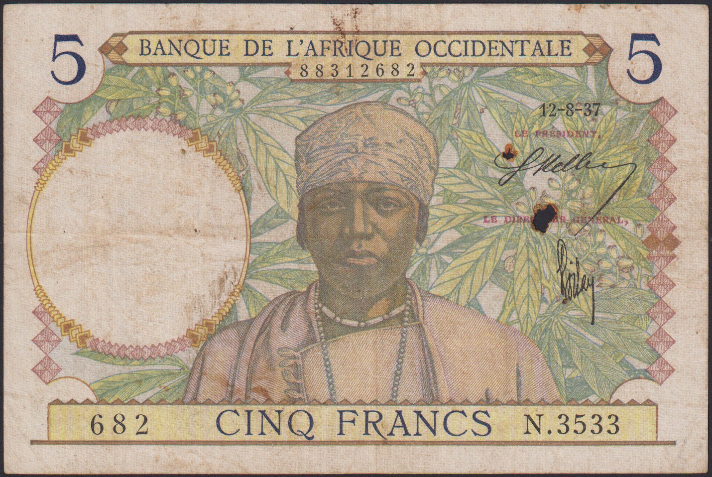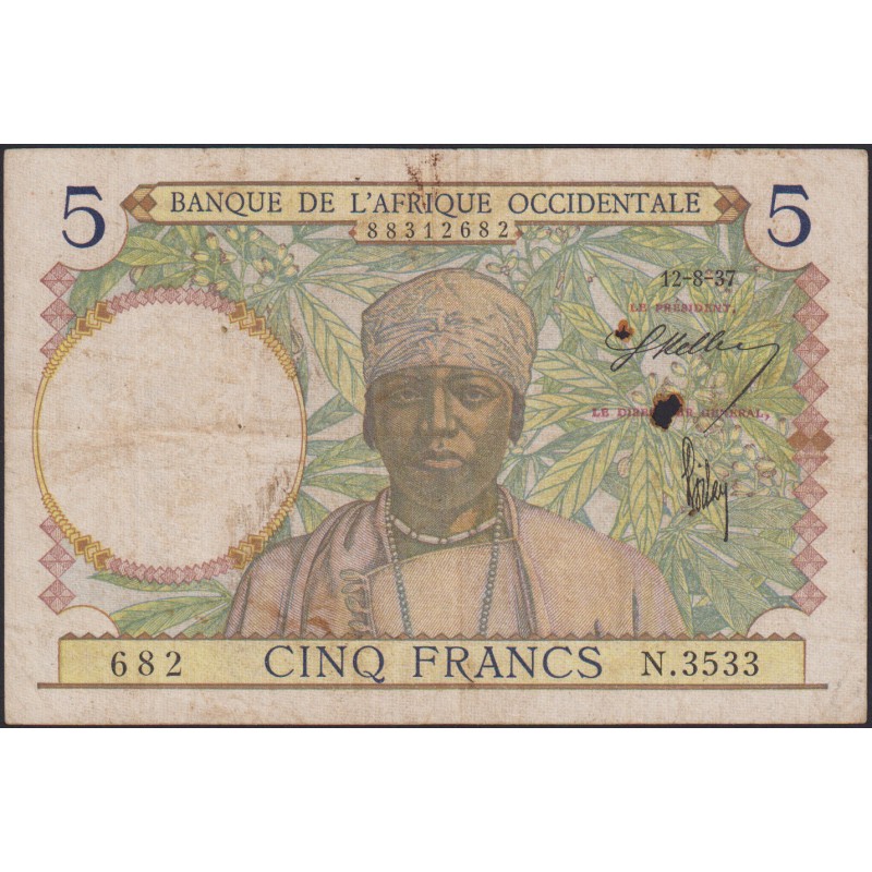 FRENCH WEST AFRICA 5 Francs 12.08.1937