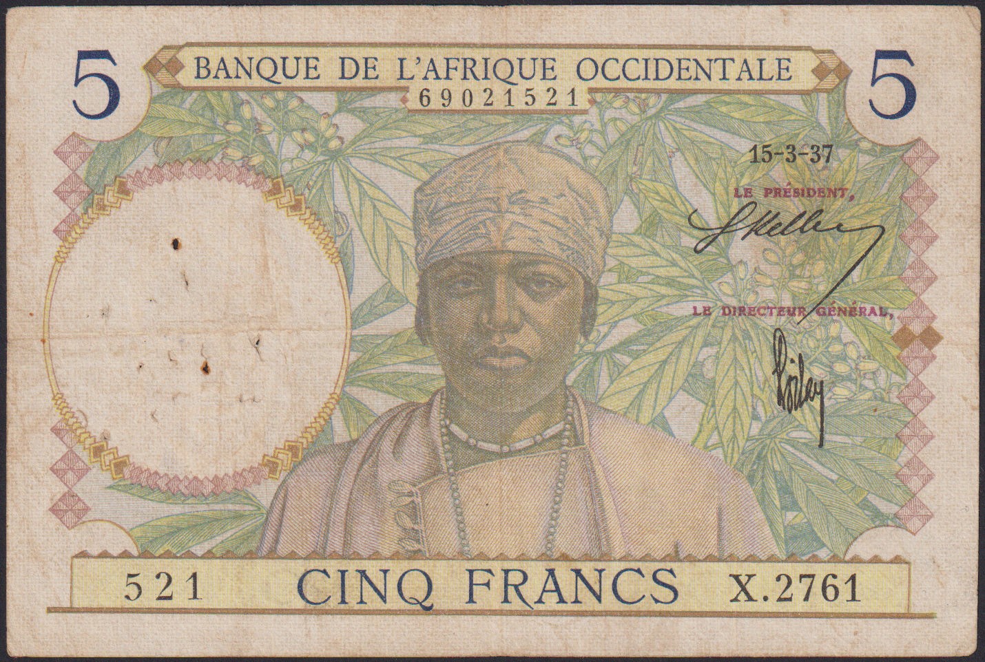 FRENCH WEST AFRICA 5 Francs 15.03.1937