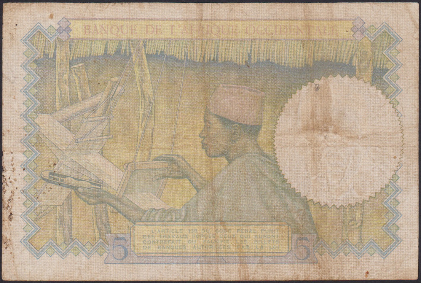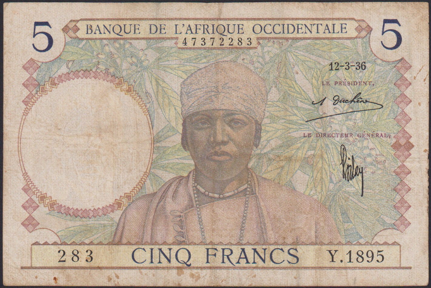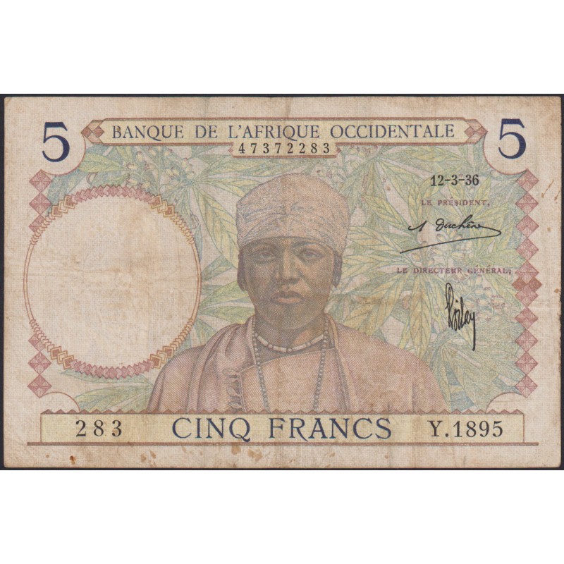 FRENCH WEST AFRICA 5 Francs 12.03.1936
