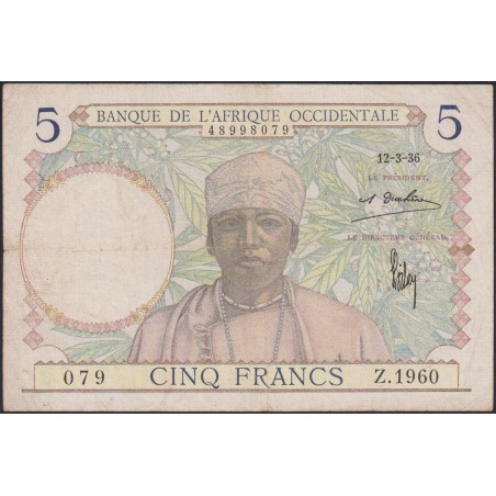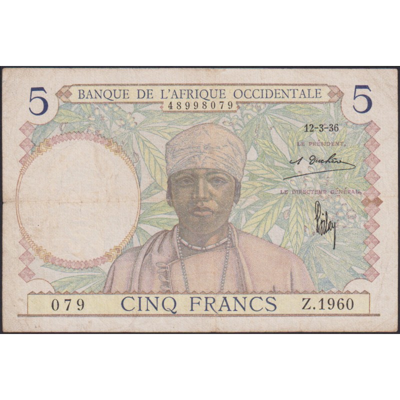 FRENCH WEST AFRICA 5 Francs 12.03.1936