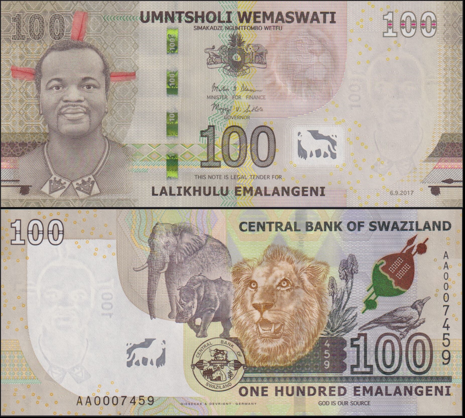 SWAZILAND 100 Emalangeni 2017 Hybrid Low Serial