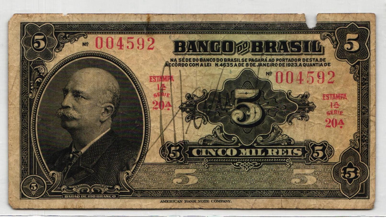 BRAZIL 5 Mil Reis 1923