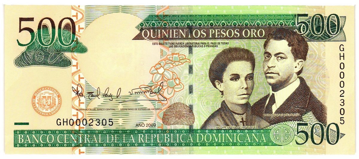 DOMINICAN REPUBLIC 500 Pesos Oro 2009 Low Serial