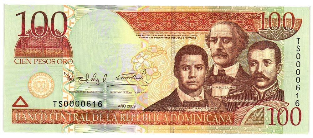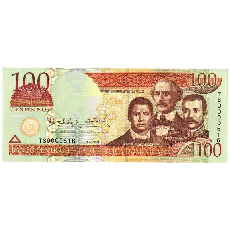 DOMINICAN REPUBLIC 100 Pesos Oro 2009 Low Serial