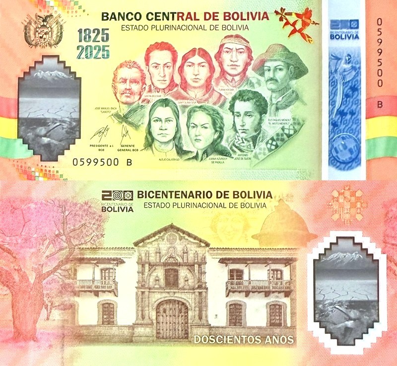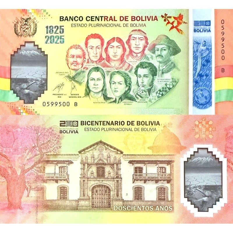 4. BOLIVIA Commemorative "200 Anniversary of Bolivia 1825-2025" Polymer 2025