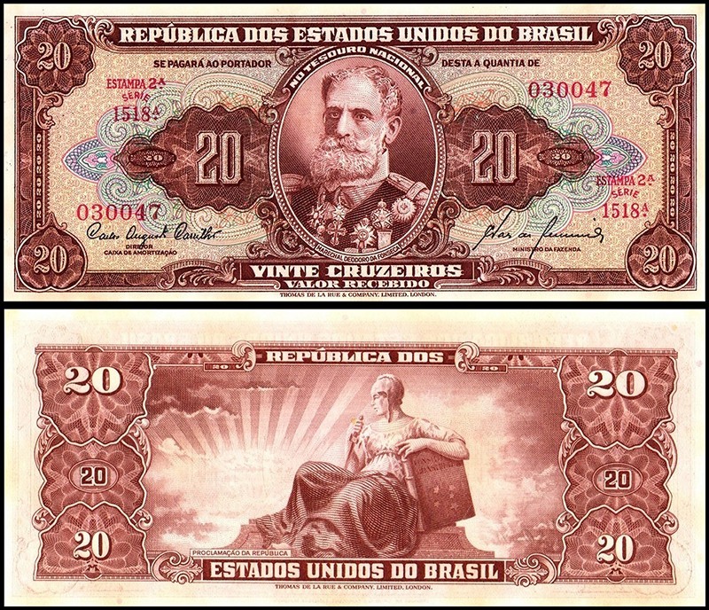 Il fronte presenta il ritratto di Manuel Deodoro da Fonseca, primo Presidente della Repubblica del Brasile e protagonista della Proclamazione della Repubblica nel 1889. Il ritratto, riccamente inciso, è circondato da una cornice ornamentale complessa tipica delle emissioni brasiliane di metà Novecento.