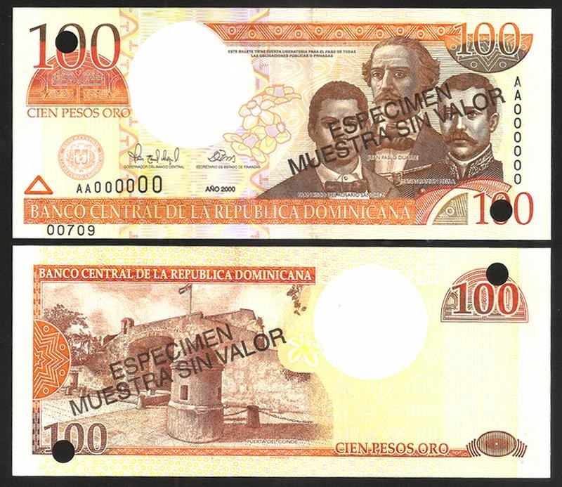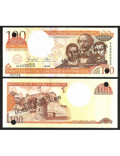 DOMINICAN REPUBLIC 100 Pesos Oro 2000 SPECIMEN