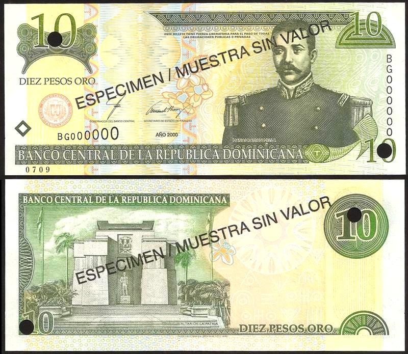DOMINICAN REPUBLIC 10 Pesos Oro 2000 SPECIMEN