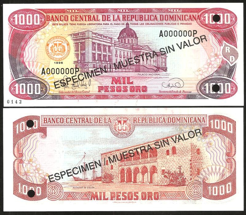 DOMINICAN REPUBLIC 1000 Pesos Oro 1996 SPECIMEN