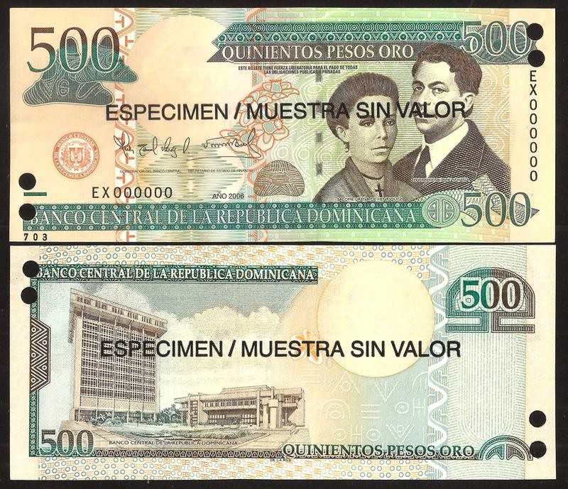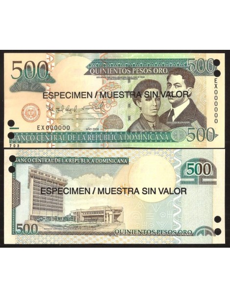 DOMINICAN REPUBLIC 500 Pesos Oro 2006 SPECIMEN