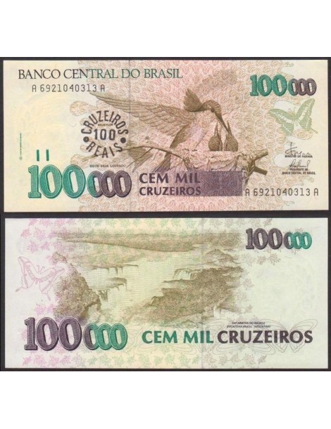 BRAZIL 100 Cruzeiros on 100.000 Cruzeiros 1993