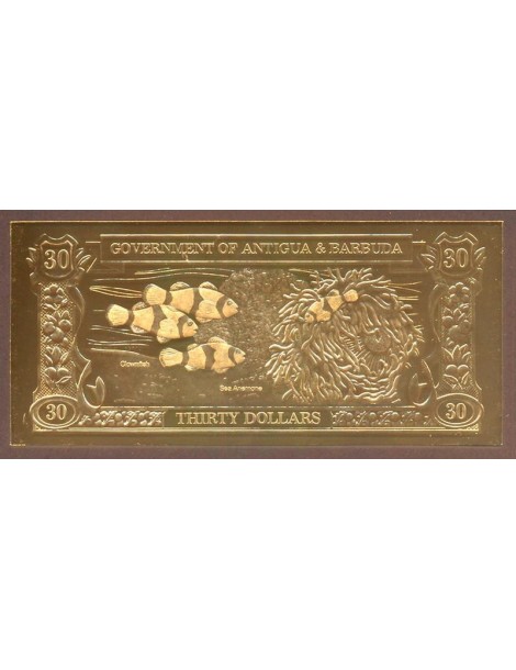 ANTIGUA & BARBUDA 30 Dollars 1983 Gold Foil Clown Fish And Anemone