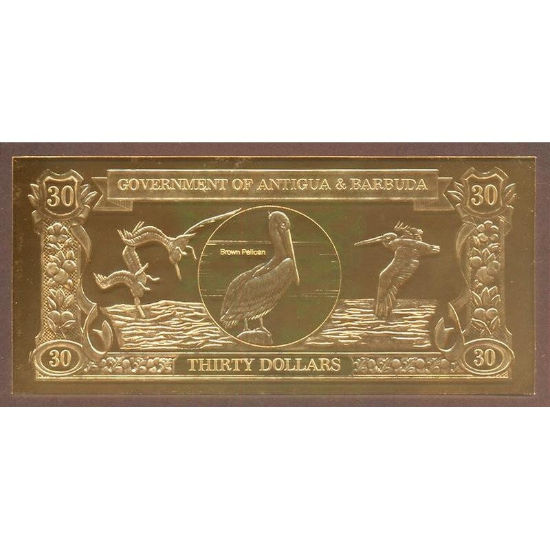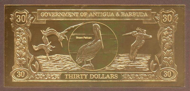 ANTIGUA & BARBUDA 30 Dollars 1983 Gold Foil Brown Pellican