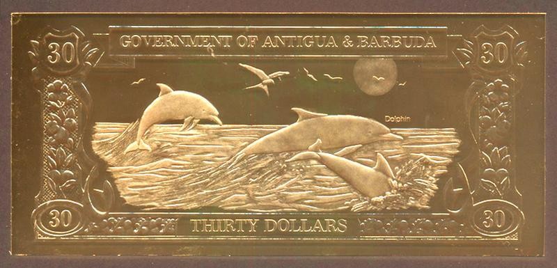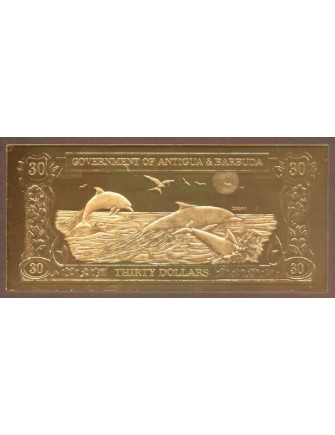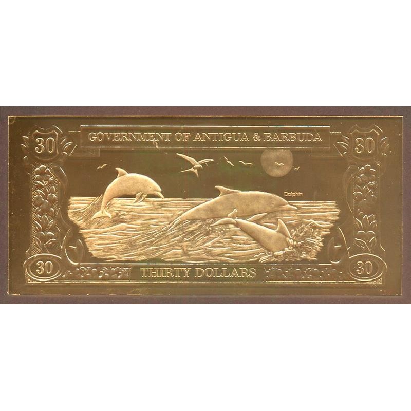 ANTIGUA & BARBUDA 30 Dollars 1983 Gold Foil Dolphins