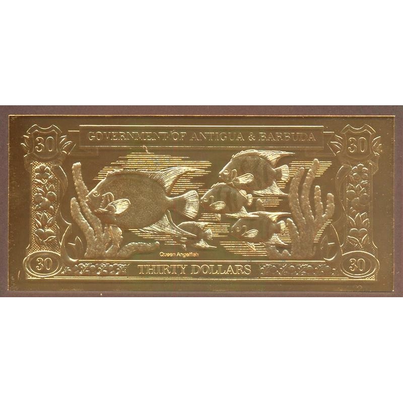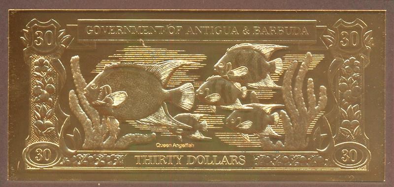 ANTIGUA & BARBUDA 30 Dollars 1983 Gold Foil Queen Angelfish And Coral
