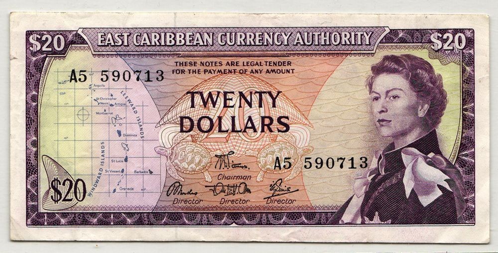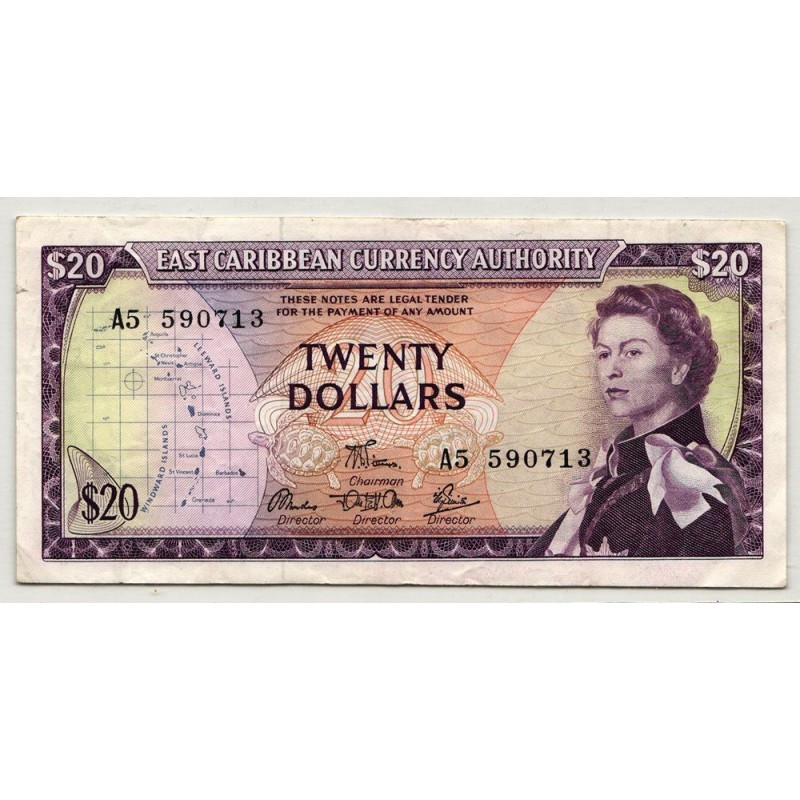 EAST CARIBBEAN STATES 20 Dollars 1965