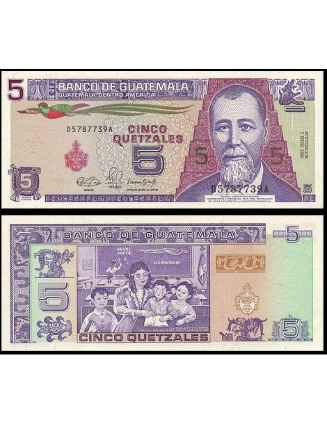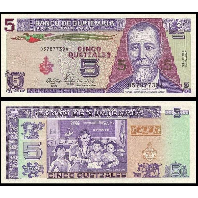 GUATEMALA 5 Quetzales 1990