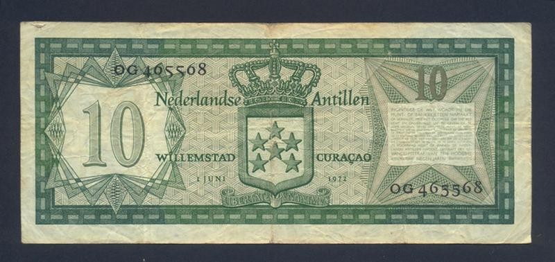 NETHERLANDS ANTILLES 10 Gulden 1972