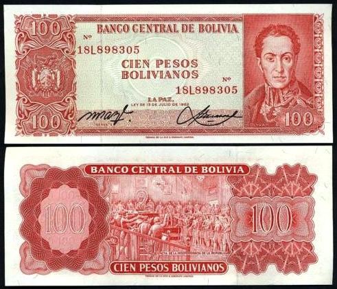 BOLIVIA 100 Pesos Bolivianos L.1962