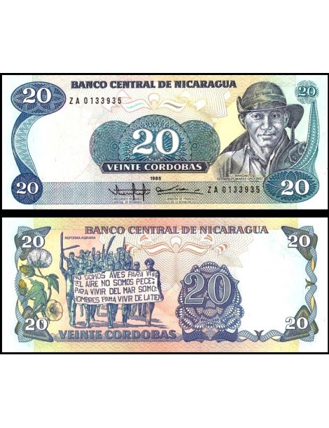 NICARAGUA 20 Cordobas 1985 Replacement