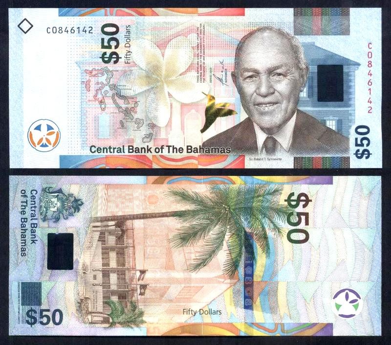 Il fronte presenta il ritratto di Sir Roland T. Symonette, raffigurato con un’impostazione formale e istituzionale che ne sottolinea il ruolo di primo piano nella storia politica delle Bahamas. La resa trasmette autorevolezza e stabilità, richiamando il contributo dato allo sviluppo dello Stato moderno.
