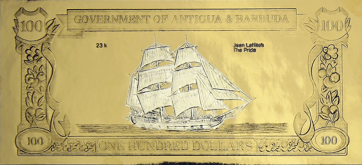 ANTIGUA & BARBUDA 100 Dollars 1981 Gold Foil Jean LaFfite and the Pride