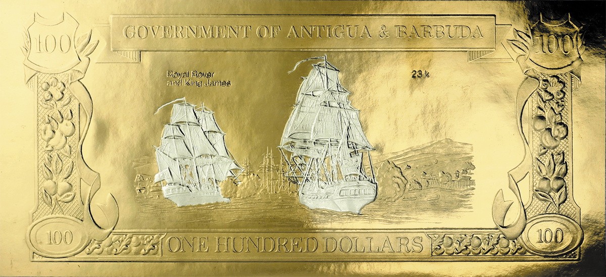 ANTIGUA & BARBUDA 100 Dollars 1981 Gold Foil Royal Rover & King James