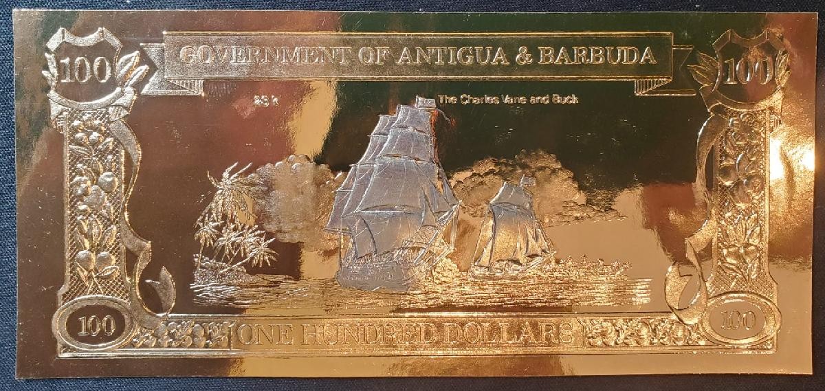 ANTIGUA & BARBUDA 100 Dollars 1981 Gold Foil Charles Vane & Buck