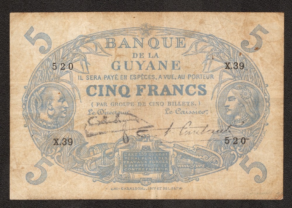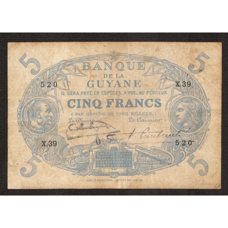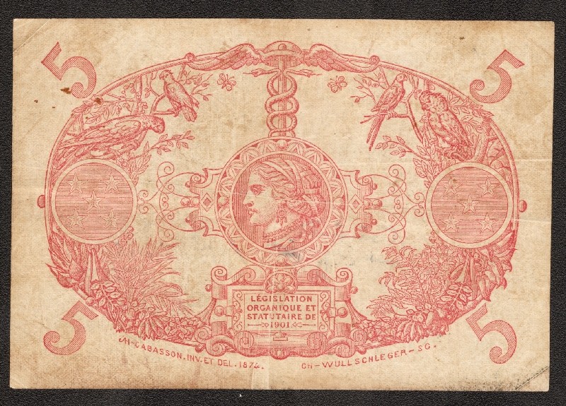 FRENCH GUIANA 5 Francs L. 1901 (1922-1947)