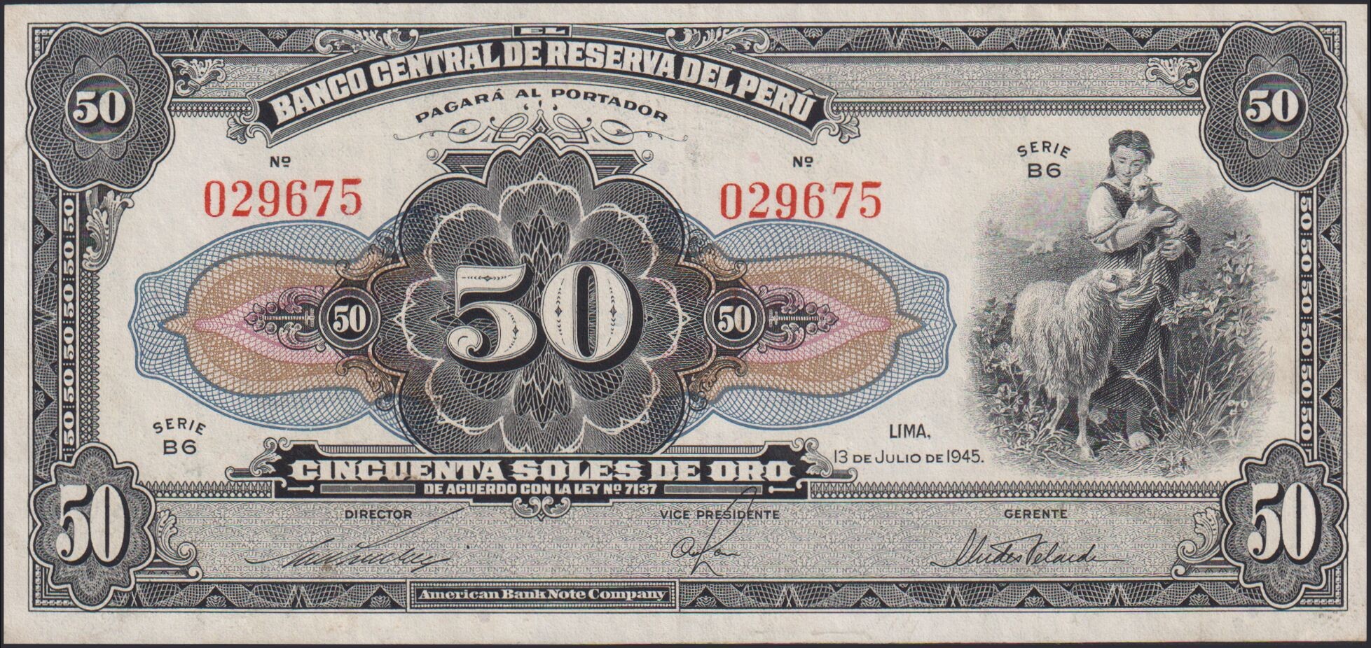 PERU 50 Soles de Oro 1945