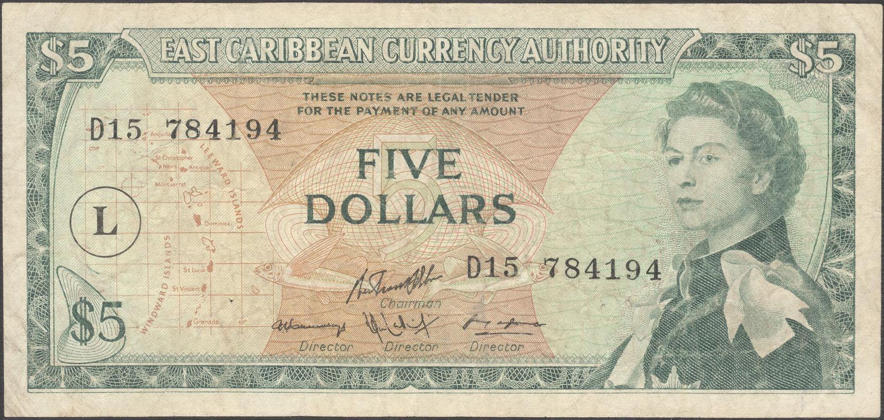 SAINT LUCIA (E.C.S.) 5 Dollars 1965
