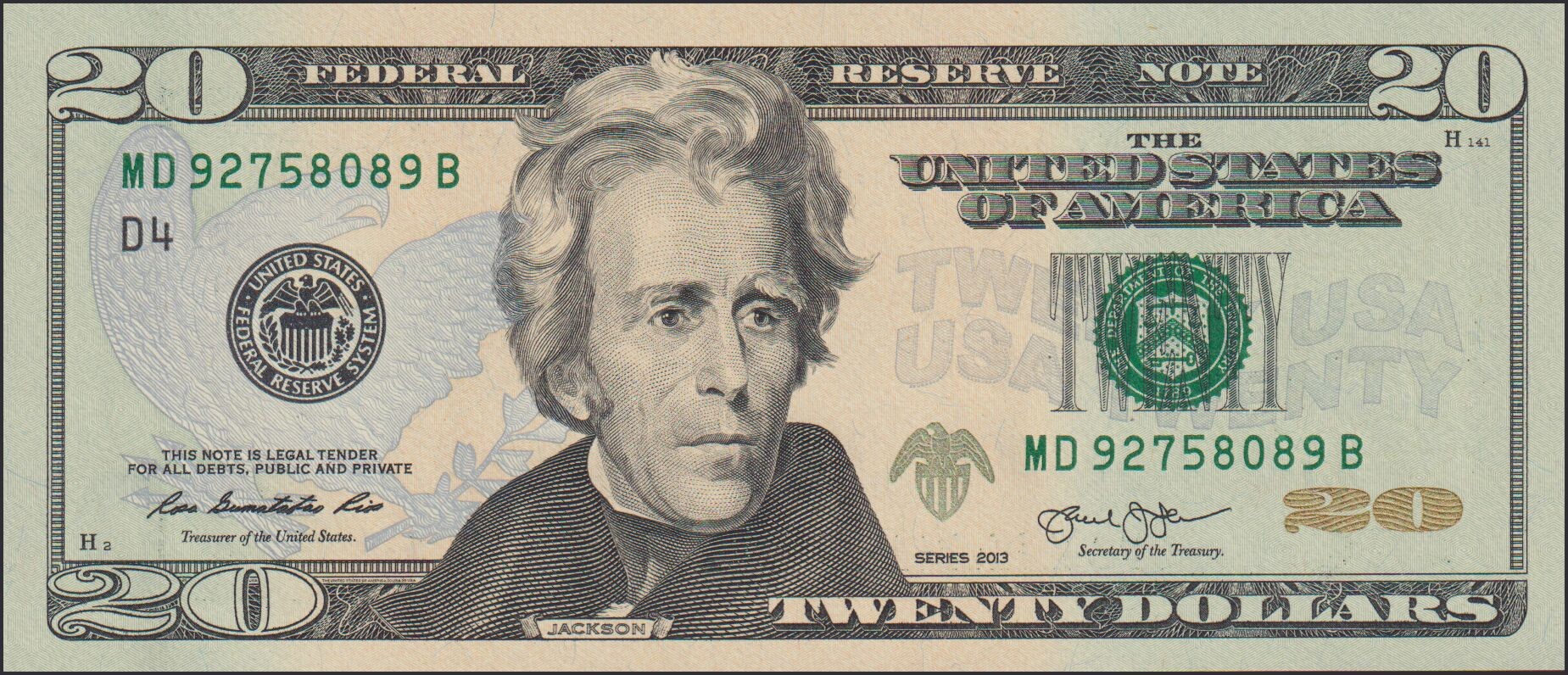 USA 20 Dollars 2013 Series D