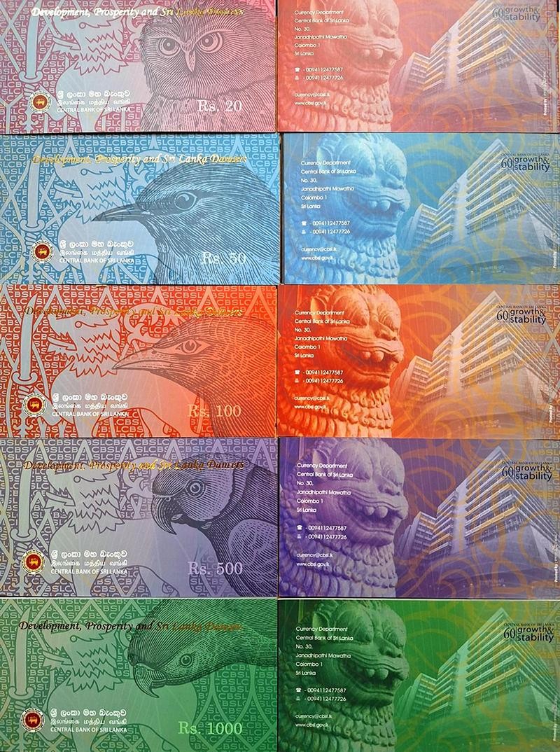 SRI LANKA SET FOLDER 20+50+100+500+1000 Rupees 2010 first issued