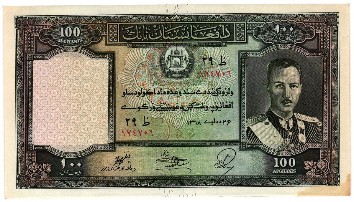 AFGHANISTAN 100 Afghanis 1939 Yellow Tone