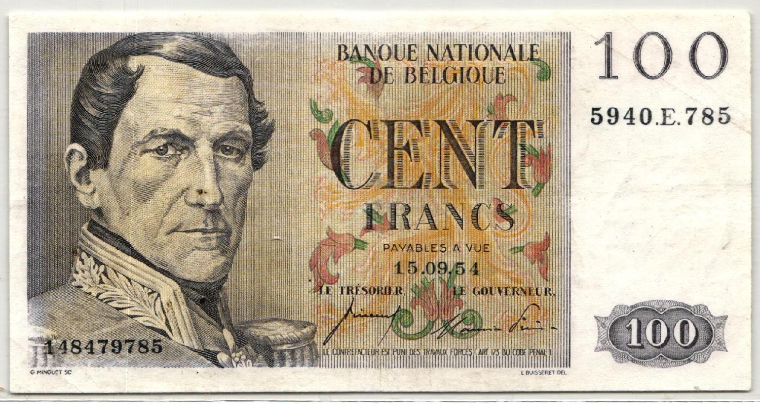 BELGIUM 100 Francs 15.09.1954