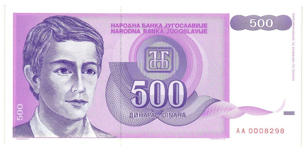YUGOSLAVIA 500 Dinara 1992 Low Serial 000XXXX - Prefix AA