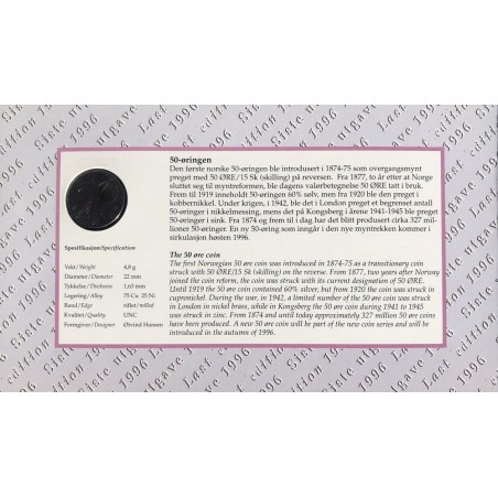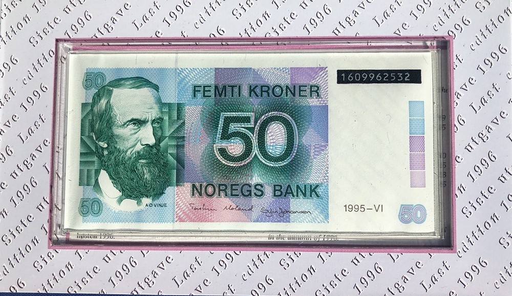 NORWAY Folder 50 Kroner 1995 (Black Serial) + 50 Ore 1996 Limited Edition