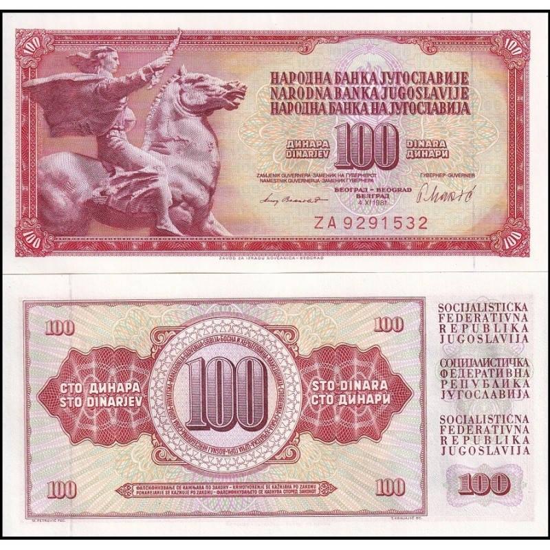 YUGOSLAVIA 100 Dinara 1981 REPLACEMENT