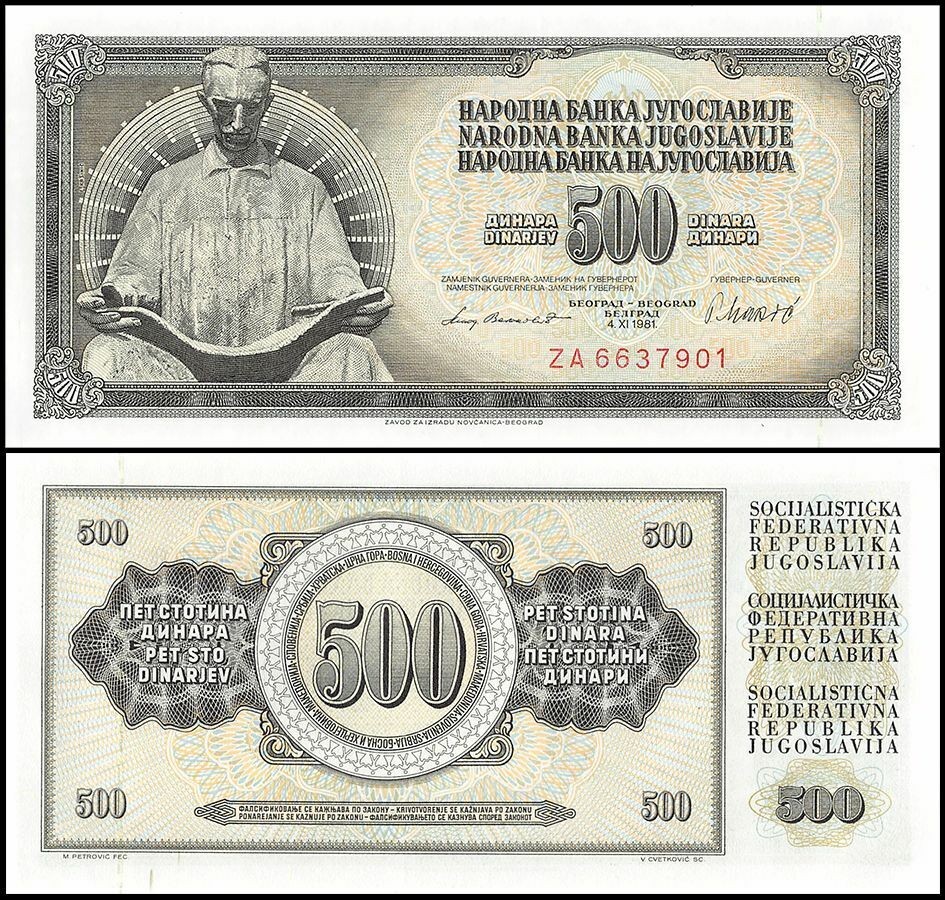 YUGOSLAVIA 500 Dinara 1981 REPLACEMENT