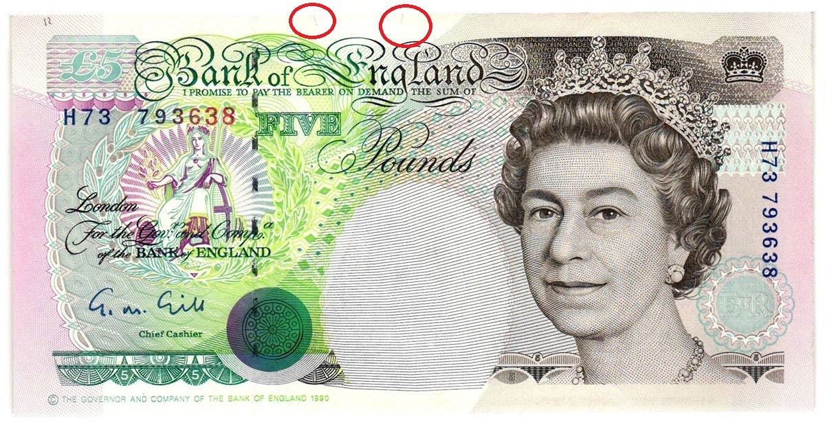 GREAT BRITAIN 5 Pounds 1990 (See Photo-2 Little Cut)
