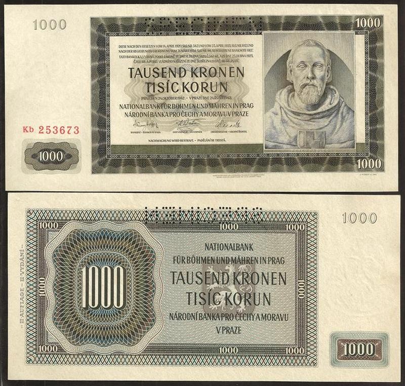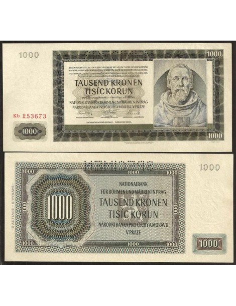 BOHEMIA & MORAVIA 1000 Korun 1942 SPECIMEN