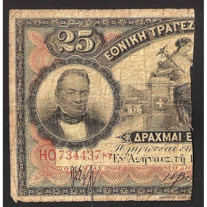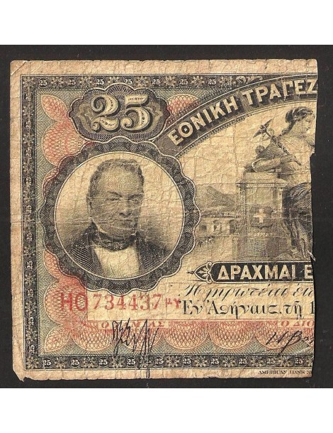 GREECE 25 Drachmai - 12 1/2 Drachmai 1922