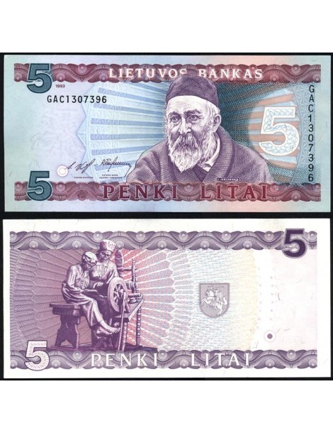 LITHUANIA 5 Litai 1993