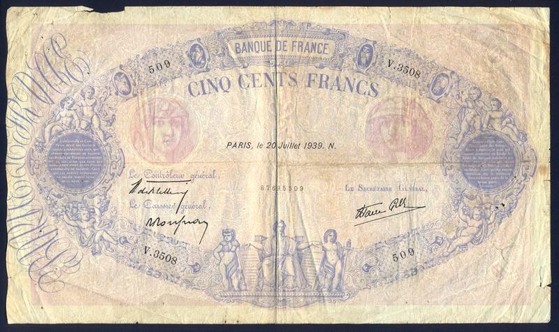 FRANCE 500 Francs 20.07.1939