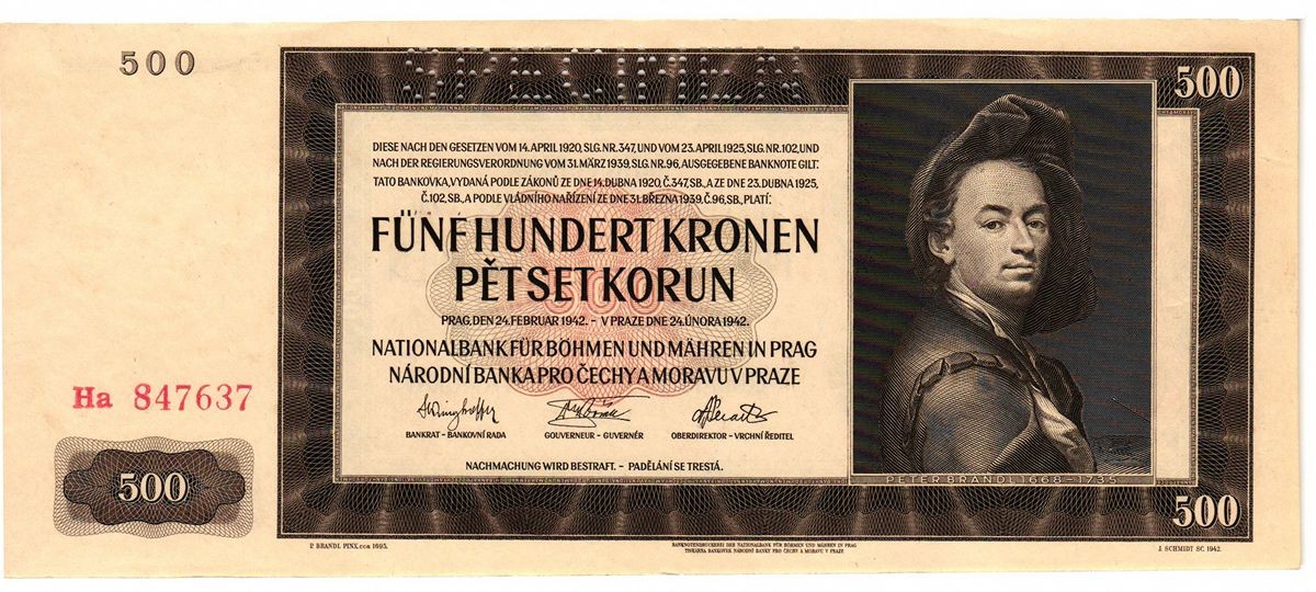 BOHEMIA & MORAVIA 500 Kronen 1942 SPECIMEN