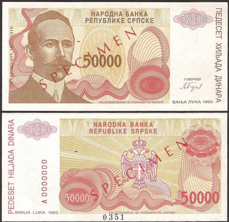 BOSNIA HERZEGOVINA 50.000 Dinara 1993 SPECIMEN