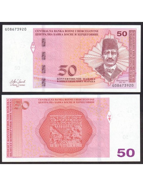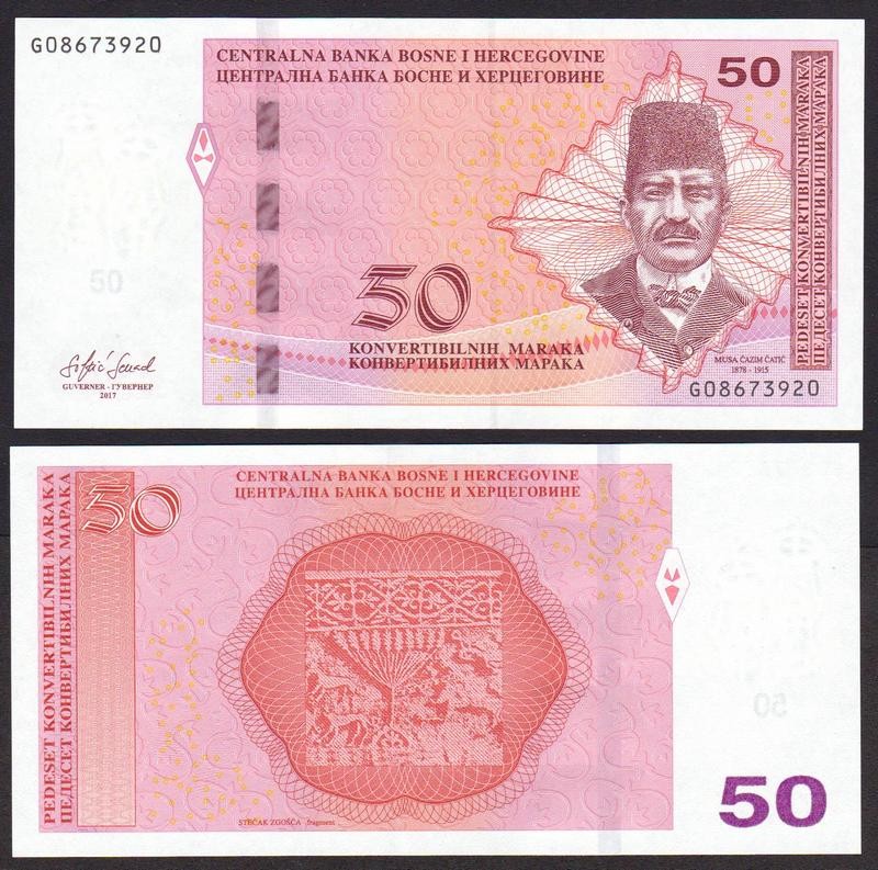 Il fronte presenta il ritratto di Musa Ćazim Ćatić, poeta e figura centrale della cultura letteraria bosniaca. La composizione è impostata in modo formale, mettendo in evidenza la sua importanza artistica.
