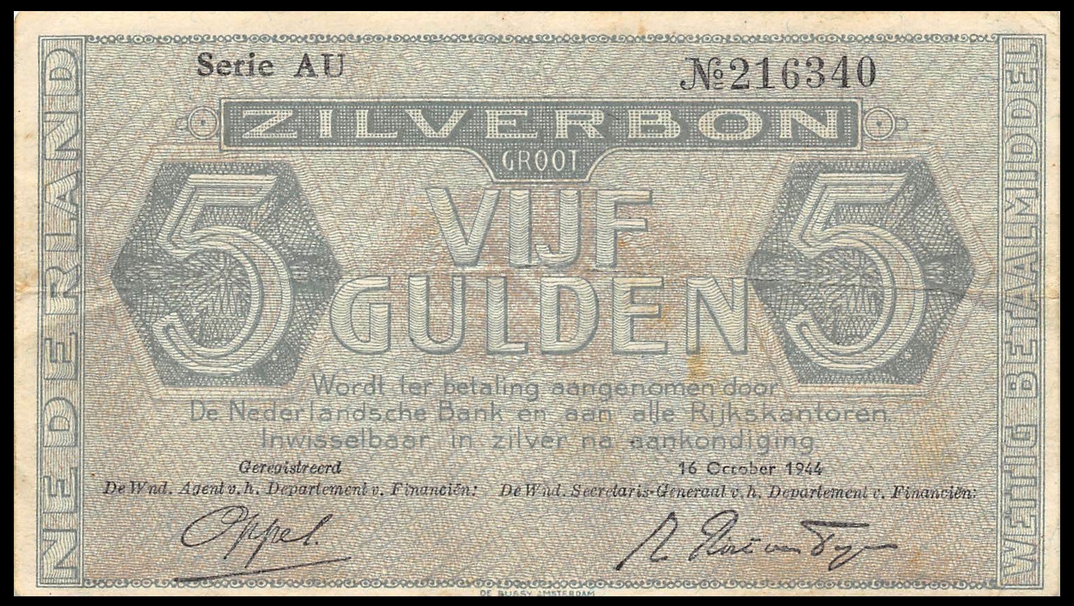 NETHERLANDS 5 Gulden 1944