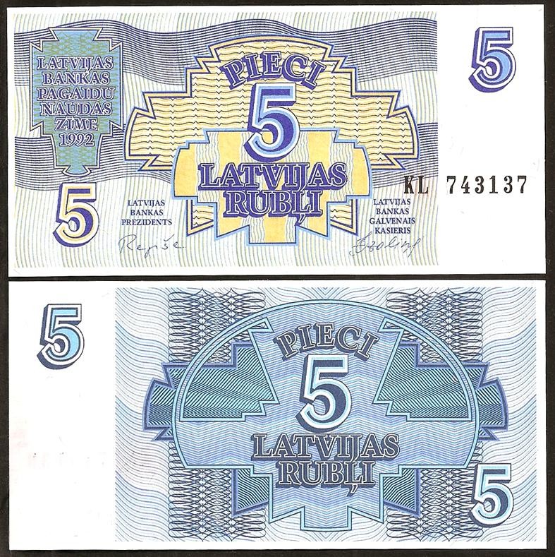 LATVIA 5 Rublis 1992